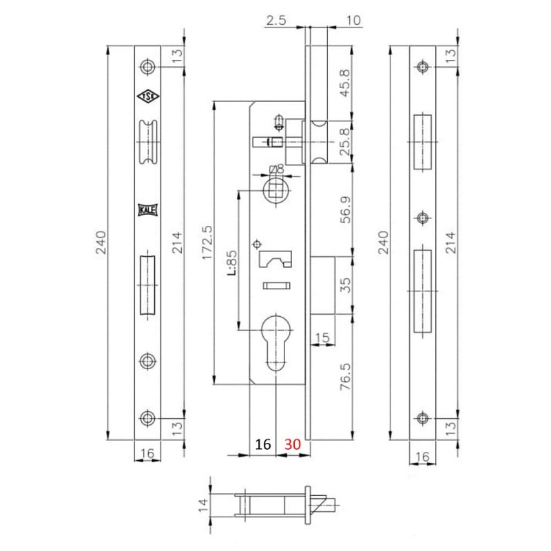 Dimensiuni broasca Kale Kilit 153P :